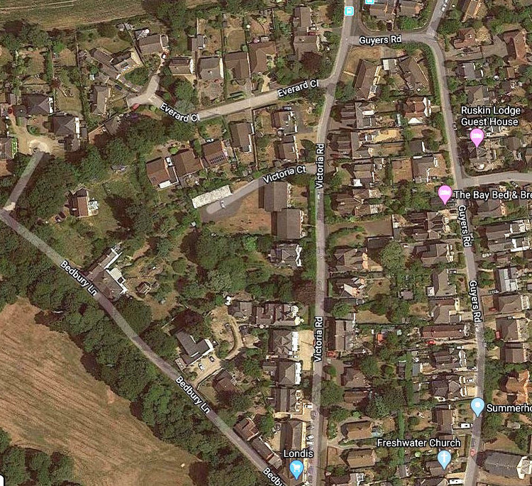 This image is from Google Maps, dated 2019 The hotel has been replaced by Victoria Court and four new properties build on the south side of Everard Close plus infill in the north side.
